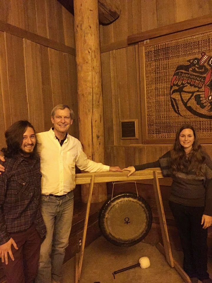 On December 4, Jessica O'Malley from the Radiance Center in Olympia led us in a Sound Healing Meditation to take us into the Heart. 25 attended after potluck dinner. Thank you, Jessica! Below, student leader Phillip Roell, Chaplain Fred, and Jessica, with her gong.