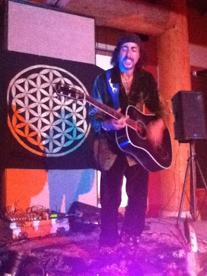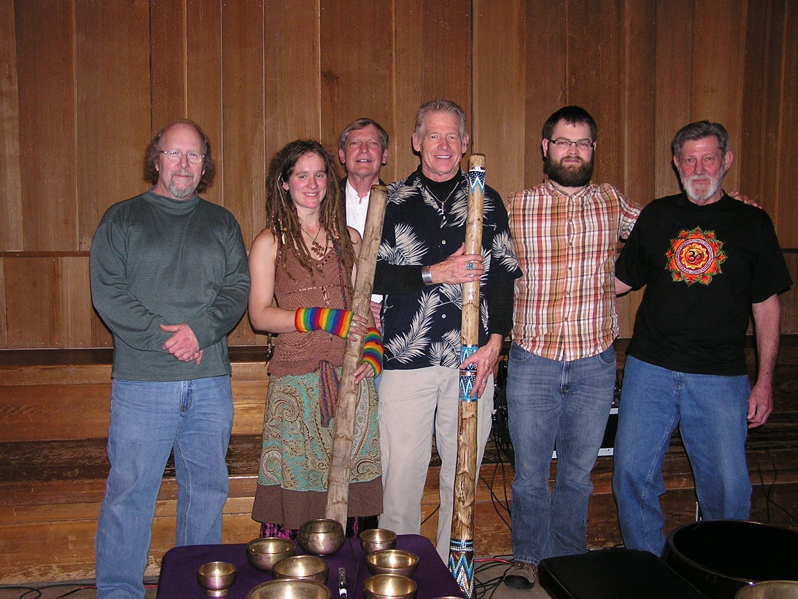 Above, leader Joe Gibbs with Teekani (which means 'Wolf' in Athabascan) after singing plant songs with leah. Below, Scott Barry and the Vibe Tribe performed unique sound therapy using the most ancient musical instrument in the world, the didgeridoo, a profound evening of meditation and healing music.