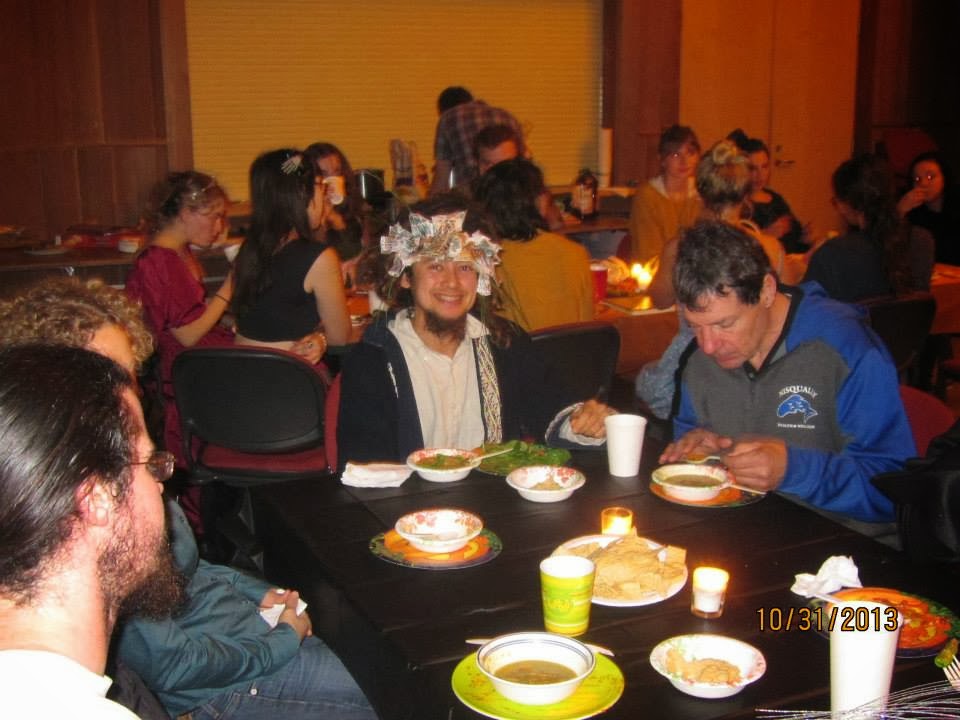 Below, on October 30 we celebrated Samhain and Halloween at Natalie's house in Olympia. Bringing sumptuous potluck food, 24 attended. Below, Kannah, Natalie and Philip in front of the Samhain alter.