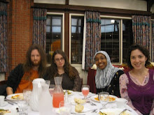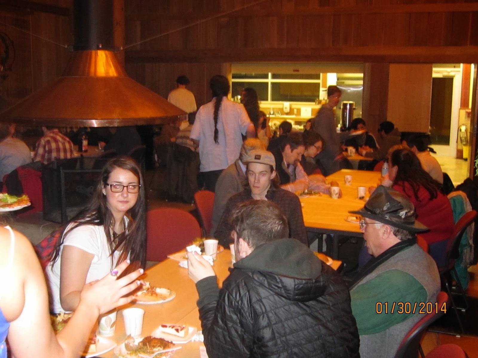 Below center, Nakki and Evan, Quaker leaders in Olympia. Nakki is Clerk of Olympia Friends. 41 Students and Quakers enjoyed potluck dinner in the Long House.