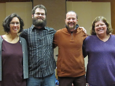 delicious potluck. Ari (below center in jacket) is a gift to our community.